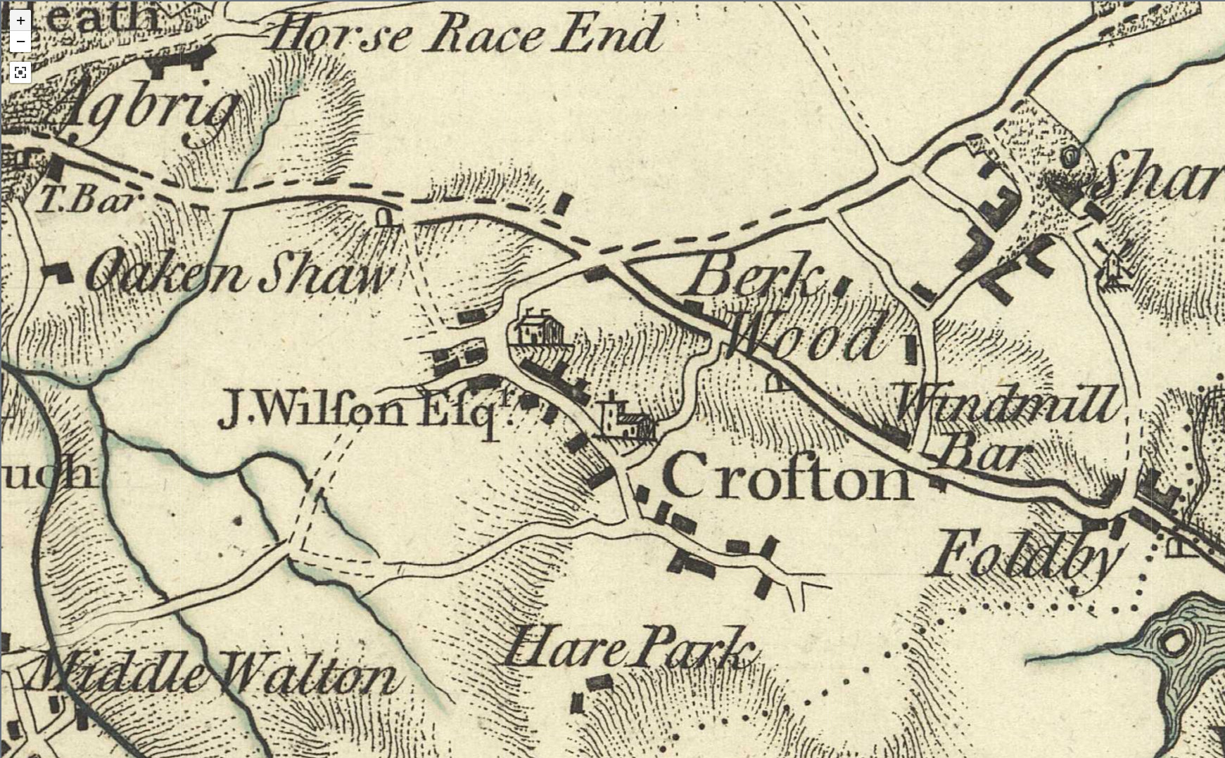 This is one of the first maps which shows Crofton in any detail. It was published in 1771 and was produced by an English mapmaker called Thomas Jefferys.