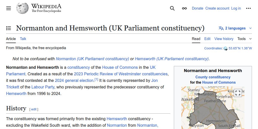 Crofton is in the Normanton and Hemsworth Parliamentary Constituency. John Tricket has been the Labour Member of Parliament (MP) for Hemsworth since a by-election in 1996. The constuency changed to the Normanton and Hemsworth constituency at the 2024 General election.